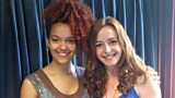 Lisa Gwilym sy'n cael cwmni Kizzy Crawford, un o artistiaid prosiect "Gorwelion".