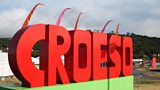 Hywel Gwynfryn a'r tîm yn fyw o Eisteddfod Genedlaethol Sir Gâr.