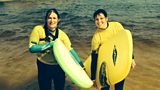 Beth Angell yn gwneud sblash yng nghwmni pedair merch sy'n chwilio am adrenalin yn y dŵr.(A)