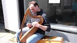 Carwyn Tywyn - y telynor sy'n canu yn y stryd - ydi gwestai Idris Morris Jones.