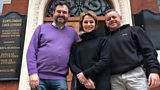 Nia Roberts yn Covent Garden gyda'r gweinidog Rob Nicholls a'r canwr opera Aled Hall.