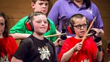 50 o blant, prin dim cefndir cerddorol, ac un nod - i greu band a chôr mewn 6 mis.