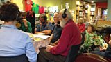 Gerallt Pennant yn darlledu'n fyw o ardd Palas Print, Caernarfon.