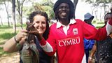 Eurgain Gwilym o Flaenau Ffestiniog sy'n rhannu ei phrofiadau wrth wirfoddoli yn Zimbabwe.(A)
