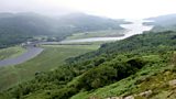 Iolo Williams yn ardal Aber Mawddach gyda Rhys Gwynn a Kelvin Jones.(A)