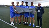 Gethin Jones o Everton sy'n rhannu'r profiad o gysgu'n yr awyr agored ym Mharc Goodison.
