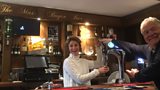 Nia Roberts yn sgwrsio gyda'r diddanwr Max Boyce.