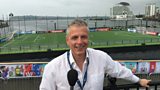 Ddiwrnod cyn Juventus v Real Madrid, mae Gaynor Davies yn cael cwmni Owain Tudur Jones.