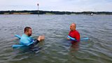 Ar ddechrau gwyliau'r haf, mae Aled yn dysgu sut i nofio'n ddiogel yn y môr.