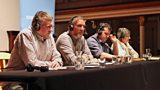 Cwestiynau am natur a bywyd gwyllt gan gynulleidfa ym Machynlleth.