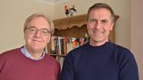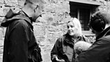 Beti George yn sgwrsio gyda'r Albanwr David Sinclair, cyn iddo symud i Prague.