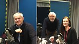 Nia Roberts yn sgwrsio gydag Awen Iorwerth a Deri Tomos.