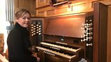 Ilid Ann Jones a chyfaredd chwarae'r organ mewn neuadd gyngerdd.