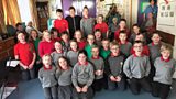 Nia Lloyd Jones yn dathlu'r Nadolig yng nghmwni preswylwyr Plas Pengwaith yn Llanberis.
