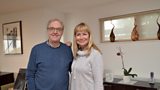 Angharad Price a Richard Outram sy'n trafod Trysorau Cudd Caernarfon.(A)