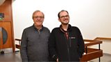 Beti George yn sgwrsio gyda Rhys Jones o Adran Ddaearyddiaeth Prifysgol Aberystwyth.