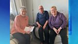 Beti George yn sgwrsio gyda Noel Thomas a'i ferch Siân.