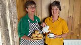 Moyra a Carol Blakeman sy'n dathlu 25 mlynedd o redeg Pantri Blakeman yng Nghaerfyrddin.