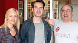 Danny Baker with stand-up comic Jimmy Carr and world champion rower Katherine Grainger.