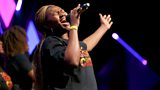 Front Row—Lucy Porter, Martin Creed, and Soweto Gospel Choir on stage at the Edinburgh Festival