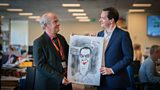 George Osborne gets a grilling whilst posing for a portrait by cartoonist Martin Rowson.