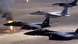 Aerial bombs dropping on Kuwait signal the start of the Gulf war.
