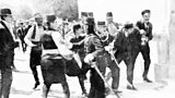 The Serbian nationalist Gavrilo Princip assassinates Archduke Franz Ferdinand in Sarajevo.
