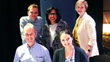 2/6John Lloyd and Romesh Ranganathan with Phill Jupitus, Roger Graef and Prue Leith.