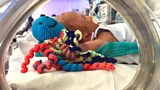 How does a knitted octopus toy help premature babies in hospital?
