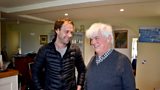 Blind broadcaster Peter White interviews amputee jockey Guy Disney about his charity work.