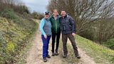 Steve Backshall and Helen Glover walk with Clare Balding on Winter Hill in Berkshire.