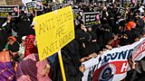 Women protestors in India condemn proposal to ban hijabs in classrooms in Karnataka.