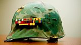 Mel Giedroyc is on a trip to Treasure Island, and tries on a helmet from the Vietnam War.