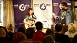 4/12Isy Suttie, on stage at the Machynlleth Bowling Club, chats to Bridget Christie.