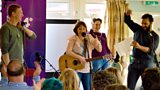4/12Isy Suttie and Arthur Smith are joined by Joe Lycett on stage at the 2014 festival.