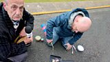 7/10Arthur chats to George Egg who cooks for him - with a blowtorch.