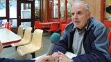 Pòl MacCaluim 's D R Caimbeul a' tadhail air na bailtean a tha am fasgadh Beinn Èiseabhal.(R)
