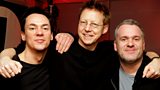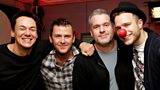 Almost there... Chris Moyles and the team are joined by Scott Mills and Olly Murs.