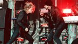 Action from Pendulum from the Pyramid Stage and Kaiser Chiefs from the Other Stage.