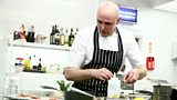 John Burton Race and Atul Kochhar feed hungry builders at the 2012 aquatics centre.