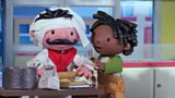 23/25Squiglet draws a laughing hyena called Harry, whose serious friend is coming for tea.(R)