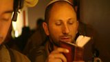 3/4Levi challenges Cornish pasty eaters in Falmouth to try his golden vegetable patties.