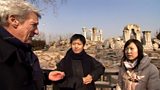 The team examine a Chinese censor and a collection of bronze animals at Dulwich College.