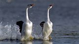 4/20An emperor penguin watches as her baby is born in the harsh habitat of Antarctica.(R)