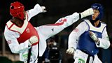 Live coverage of the latter stages of the men's under-80kg in taekwondo.