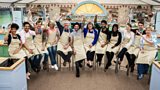 The four bakers have the mammoth task of flipping 12 uniform pancakes.(R)