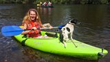 Athlete Angela and dog Jack explore the river Wye, whilst a herd of cows enjoy a massage.(R)