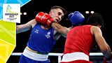 Quarter-final boxing action featuring Lennon Mulligan and Matthew McHale of Scotland.
