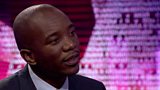 Zeinab Badawi speaks to the leader of South Africa's Democratic Alliance, Mmusi Maimane.(R)