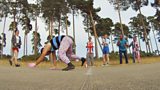 8/10James demonstrates some magical exercise equipment at Twickenham rugby stadium.(R)